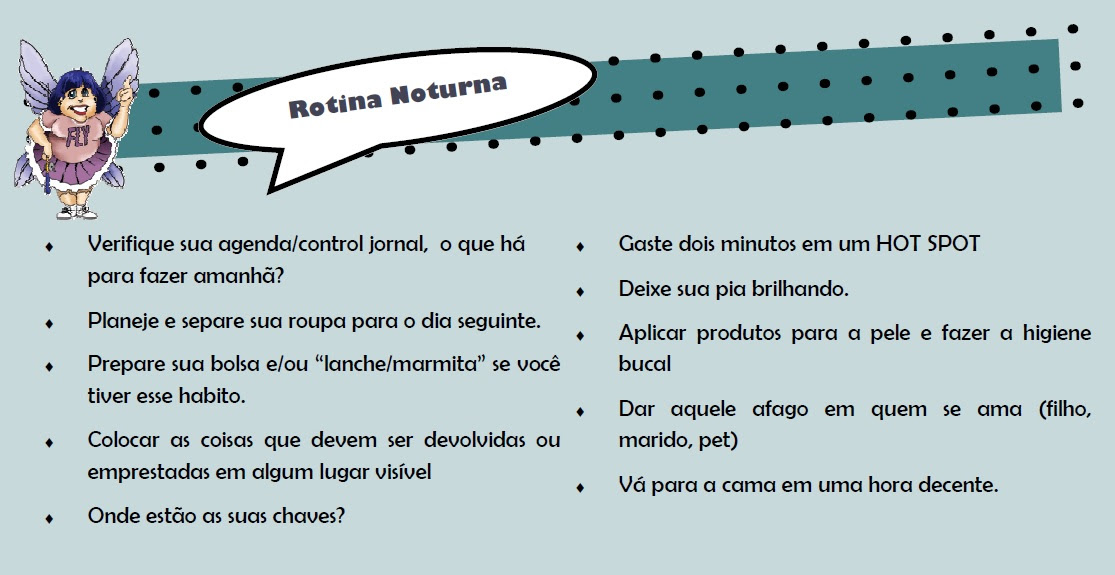 Diretrizes para guiá-las na organização diária do Sistema FlyLady, temos aqui: